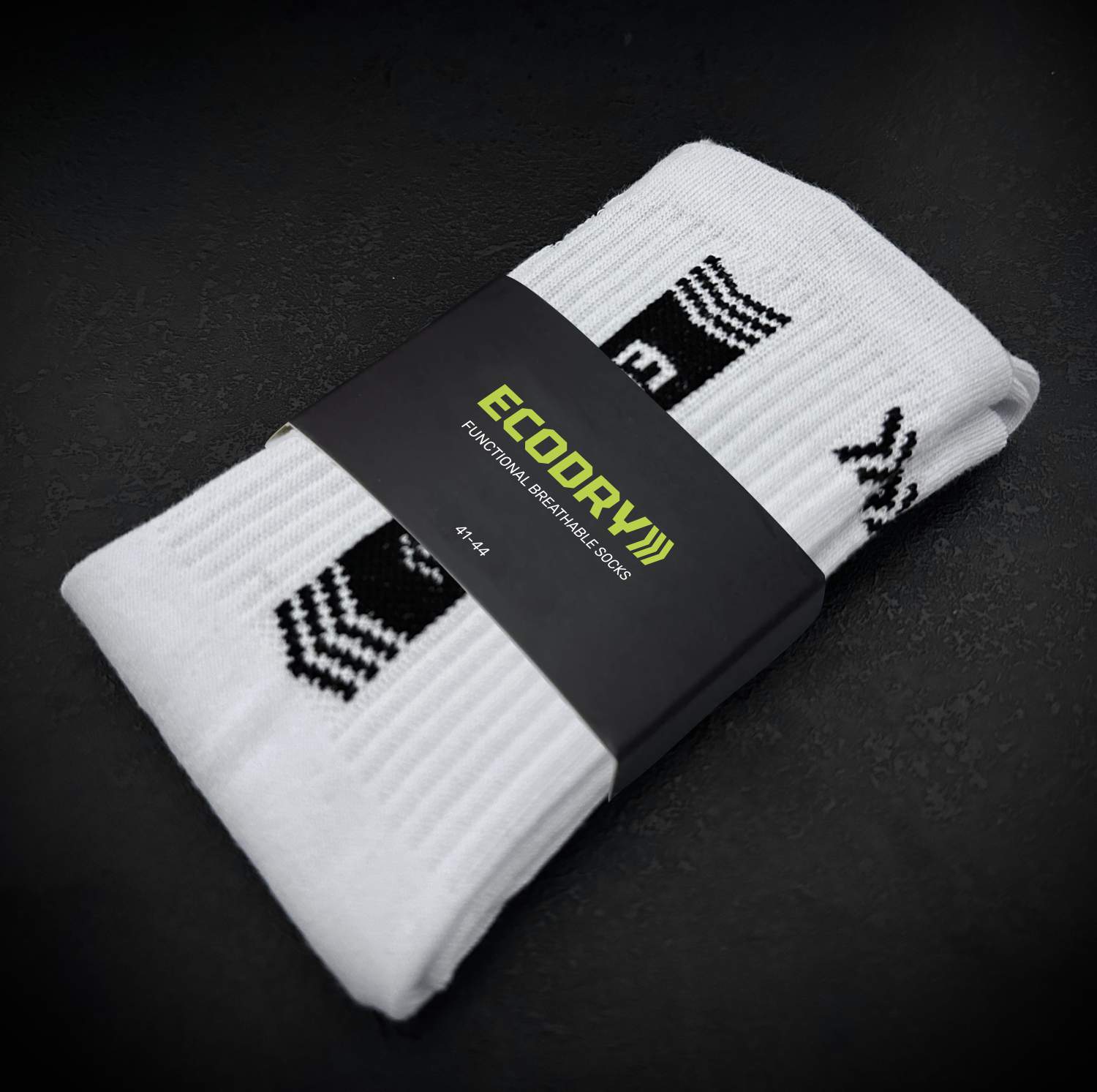 Функціональні дихаючі шкарпетки ECODRY, виготовлені з міцної тканини середньої щільності, забезпечують функціональність, повітропроникність і комфорт. Наші шкарпетки ідеально підходять для занять будь-якими видами спорту, забезпечуючи необхідну компрессійну підтримку вашої стопи.